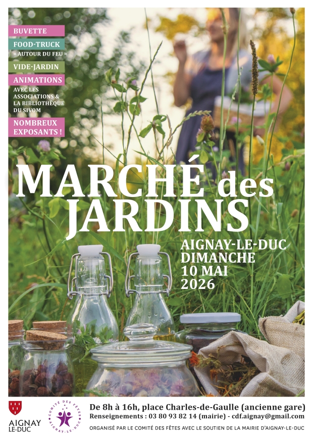 Dimanche 10 mai de 8h à 16h, nous serons présents au Marché des jardins d’Aignay-le-Duc pour vous présenter notre programme 2026 « Prends-en de la graine ! « .